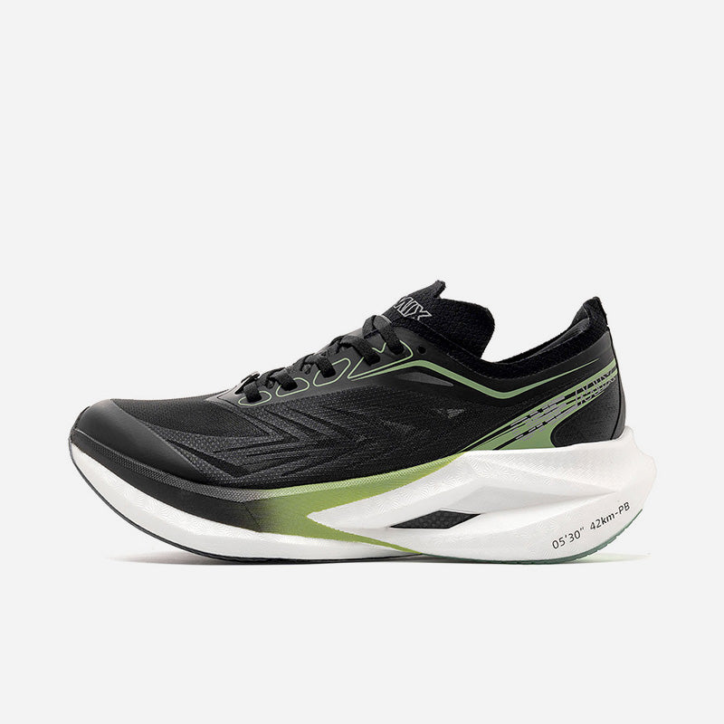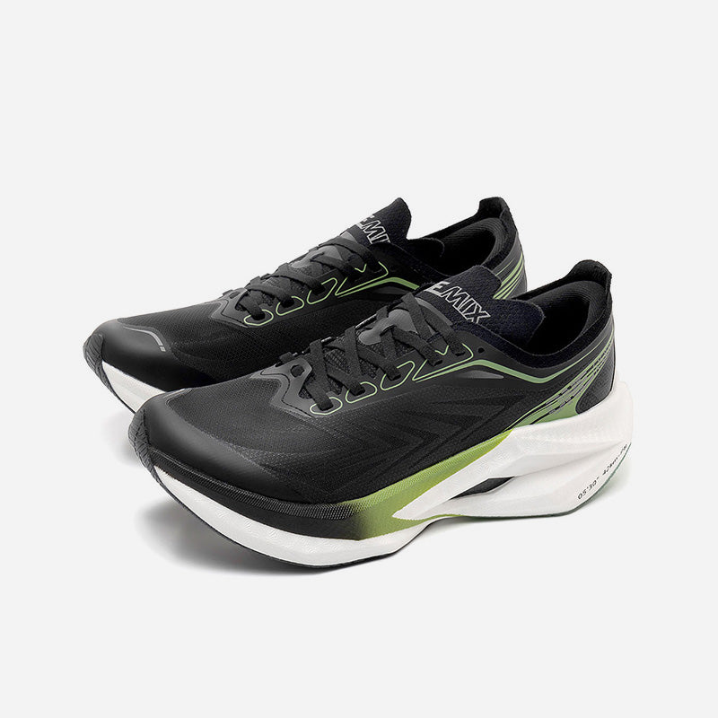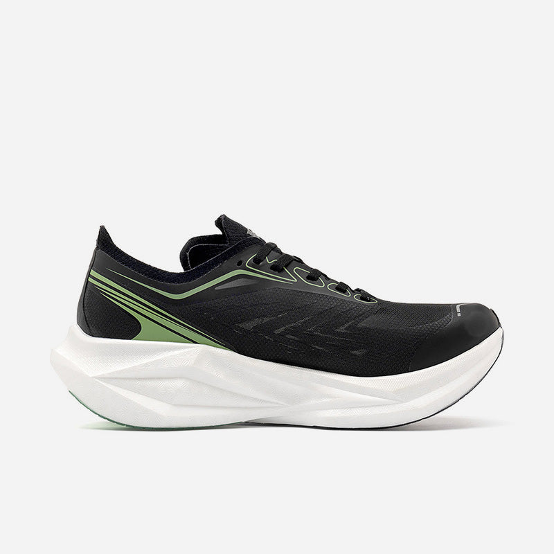 Engineered for elite marathon racing, The Flash-1 delivers next-level propulsion with ultra-lightweight design and advanced carbon technology. Upgraded SPACE 2 midsole foam perfectly balances softness, comfort and resilience. It delivers more aggressive rebound feedback, creating an extraordinary ride for speed-focused runners. The midsole is embedded with a carbon plate that extends upward on both sides, delivering surging propulsion while maintaining torsional stability and lightweight integrity. A sculpted geometric midsole reduces excess weight while enhancing structural support. Featuring a featherweight see-through upper, it feels like being wrapped in socks.